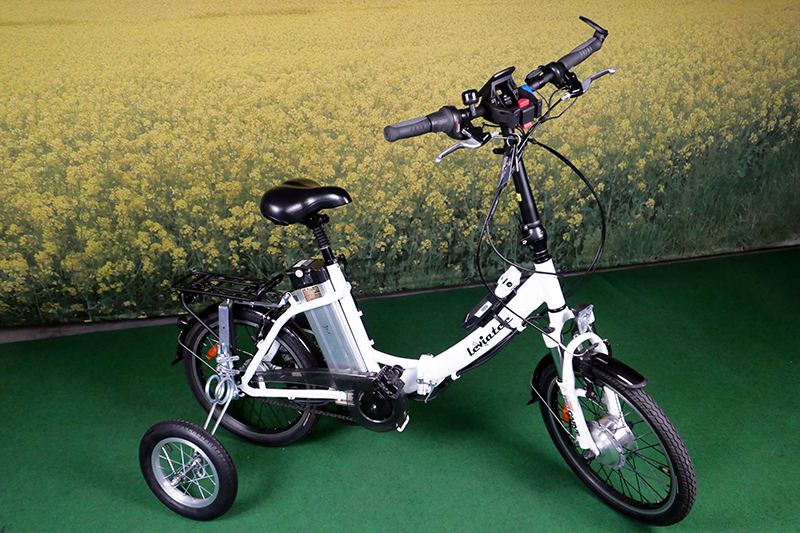 E-Faltrad Petit mit Stützrädern. Es ermöglicht Kunden die ins Fahrradfahren wieder körperlichen Einschränkungen. Das E-Klapprad Petit wird in unserer Werkstatt mit Stützrädern von Swinging Wheels ausgestattet. Die Stützräder können mit wenigen Handgriffen entfernt werden damit Sie ihr E-Bike Faltrad zusammen falten und transportieren können. Akkuleistung wahlweise 10,5AH oder 15AH Akku für bis zu 80 oder 120 km/h Reicheite. Das Pedelec Klapprad verfügt über eine Shimano Nexus 7-Gang Nabenschaltung mit Rücktrittbremse.